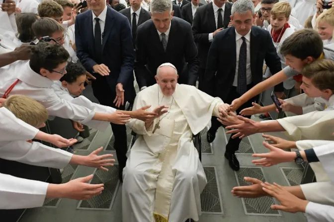 Pope Francis greets altar servers from France. / Credit: Vatican Media
