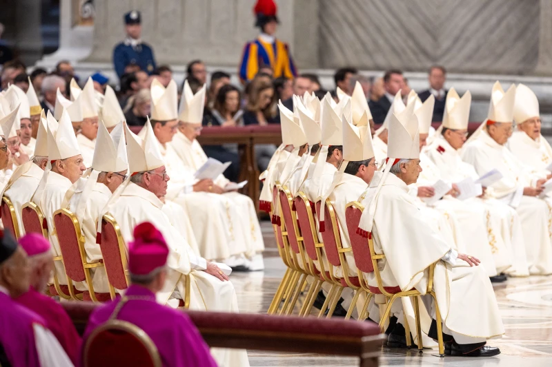 Cardinals celebrate the ninth Novendiales Mass for Pope Francis on the third Sunday of Easter, May 4, 2025, at St. Peter’s Basilica in the Vatican. / Credit: Daniel Ibañez/CNA