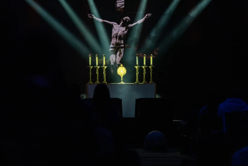 Attendees of the SEEK25 conference in Salt Lake City, Utah, participate in eucharistic adoration on Jan. 4, 2025. Credit: Elizabeth Alva/Rebuild My Church