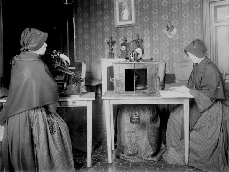 A team of nuns measures photographic plates for the Carte du Ciel project, circa early 1900s. / Credit: On Being, CC BY-NC-SA 2.0, via Flickr