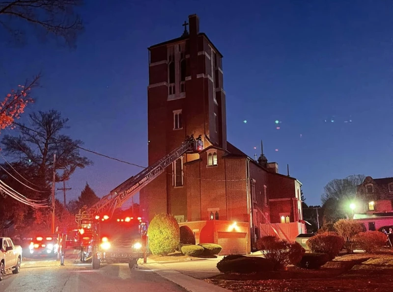 Firefighters work to extinguish a fire at St. Mary’s Parish in Franklin, Massachusetts, Wednesday, Oct. 23, 2024. / Credit: Franklin Fire Department