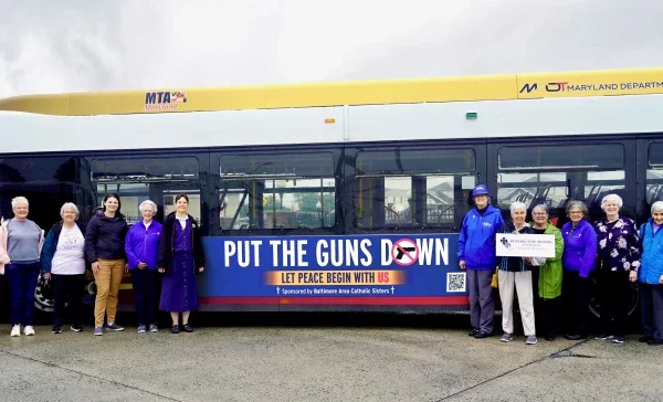 The Sisters of Bon Secours along with seven local Catholic congregations are launching a citywide advertisement campaign against gun violence in Baltimore. The ad features the message “Put the Guns Down, Let Peace Begin with Us” and a QR code linking to the campaign webpage. / Credit: Liz O’Neill CNA Staff, May 29, 2025 /…