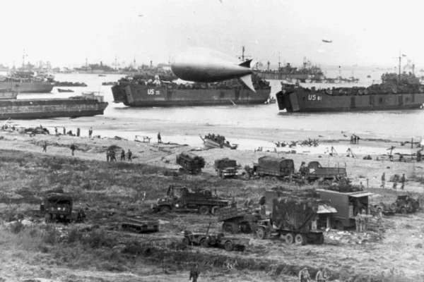 U.S. Navy LSTs and other vessels unloading at low tide at Normandy, soon after the June 1944 invasion. USS LST-55 is in the center, behind the closest barrage balloon. USS LST-61 is at right. / Credit: Steck, U.S. Army Signal Corps, Public domain, via Wikimedia Commons Washington, D.C. Newsroom, May 12, 2025 / 17:26 pm…