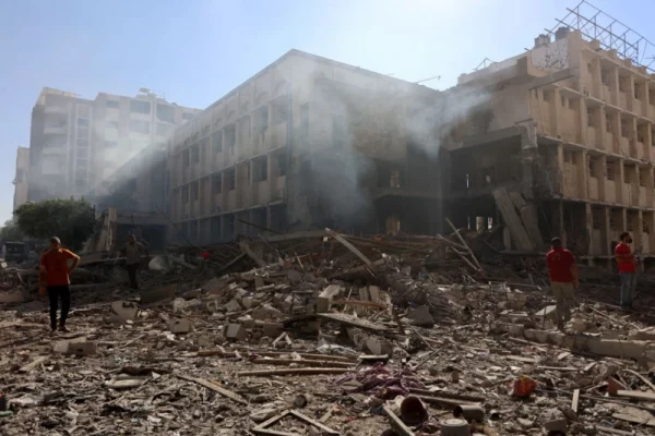 Palestinians stand on the rubble and debris of the Latin Patriarchate Holy Family School after it was hit during Israeli military bombardment in Gaza City on July 7, 2024, amid the ongoing conflict in the Palestinian territory between Israel and Hamas. / Credit: OMAR AL-QATTAA/AFP via Getty Images Washington, D.C. Newsroom, Apr 16, 2025 /…