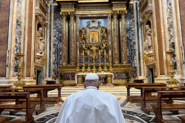 Pope Francis kneels in prayer before the revered Marian icon “Salus Populi Romani” at the Basilica of Santa Maria Maggiore in Rome, April 12, 2025. / Holy See Press Office CNA Newsroom, Apr 12, 2025 / 09:20 am (CNA). Pope Francis made a prayerful pilgrimage to the Basilica of Santa Maria Maggiore on Saturday afternoon,…