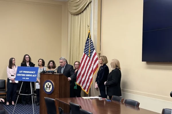 Rep. Chris Smith, R-New Jersey, co-chair of the Congressional Pro-Life Caucus, speaks during a presentation of the Let Pregnancy Centers Serve Act, which protects pregnancy care facilities, at a March 24, 2025, press conference in the U.S. Capitol. / Credit: Tessa Gervasini/CNA Washington D.C., Mar 25, 2025 / 11:30 am (CNA). U.S. Reps. Chris Smith,…