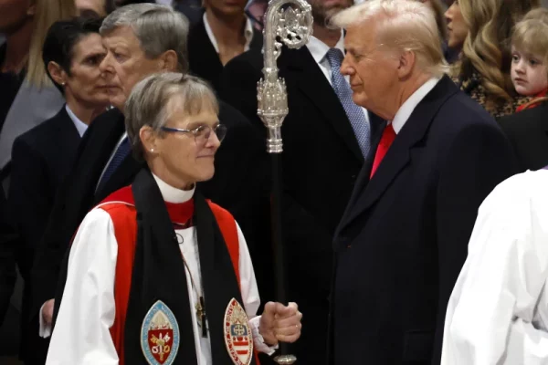 Episcopal Bishop Mariann Edgar Budde (left) arrives as U.S. President Donald Trump looks on during the National Prayer Service at Washington National Cathedral on Jan. 21, 2025, in Washington, DC.. / Credit: Chip Somodevilla/Getty Images Washington, D.C. Newsroom, Jan 21, 2025 / 15:30 pm (CNA). At the interfaith prayer service held at Washington National Cathedral…