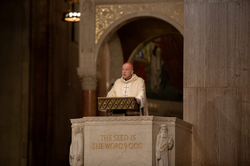 Cardinal Robert McElroy gives his first homily as the shepherd of the Archdiocese of Washington, at the Basilica of the National Shrine of the Immaculate Conception on March 11, 2025. / Credit: Patrick Ruddy/CNA