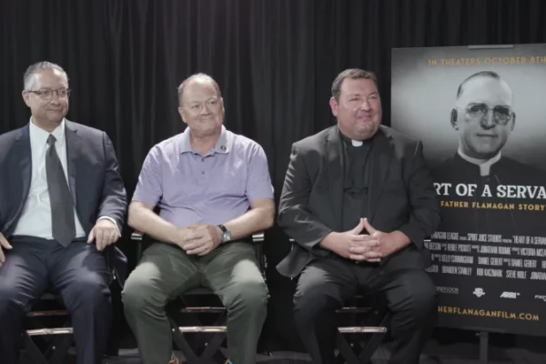From left to right: Deacon Omar F.A. Gutierrez, notary in the cause for canonization, Steve Wolf, vice postulator in the cause for canonization and a Boys Town alumnus, and Father Ryan Lewis, JCL, the archbishop’s delegate. / Credit: EWTN screenshot/Francesca Pollio Fenton/CNA CNA Staff, Oct 7, 2024 / 06:00 am (CNA). A new film depicting…
