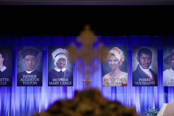A still from “Trailblazers of Faith: The Legacy of African American Catholics,” which tells the inspiring story of how African Americans found a home in Catholicism without abandoning their identity or culture. Those pictured are the African Americans currently on the path to sainthood: Venerable Henriette DeLille, Julia Greeley, Father Augustus Tolton, Mother Mary Lange,…
