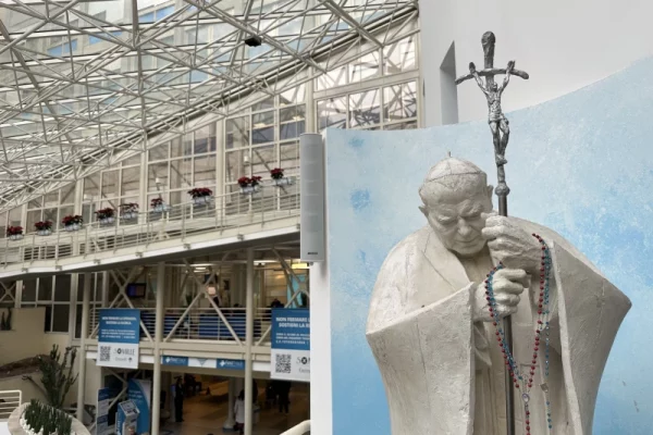 The chapel at Gemelli Hosptial in Rome bears the name and contains a relic of another pope who knew these corridors well: St. John Paul II. The Polish pontiff was hospitalized here multiple times, including after an assassination attempt in 1981. / Credit: Courtney Mares/CNA Vatican City, Feb 28, 2025 / 14:58 pm (CNA). Pope…