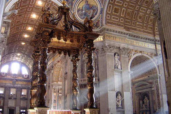 Bernini’s famous baldacchino in St. Peter’s Basilica. / Credit: Ricardo André Frantz/Wikipedia/CC BY-SA 3.0 ACI Prensa Staff, Feb 7, 2025 / 18:20 pm (CNA). A man desecrated the main altar of St. Peter’s Basilica in the Vatican by climbing on top of it and throwing six candelabras that were on the altar to the ground,…