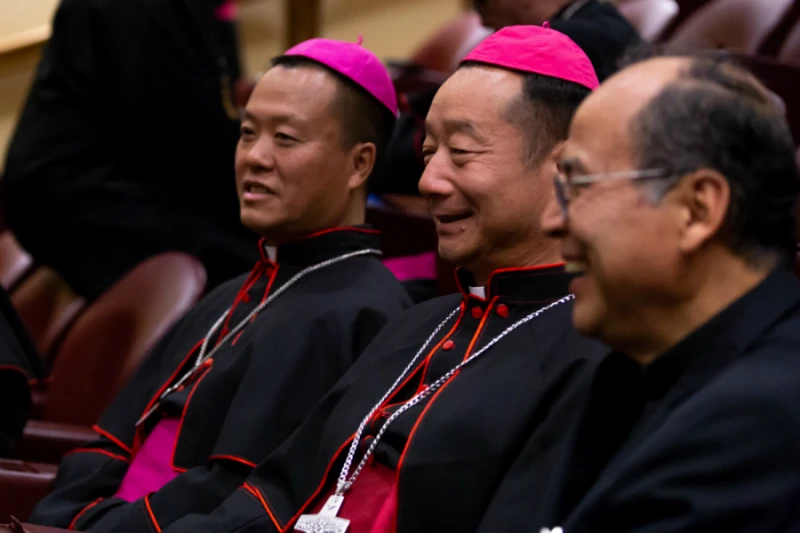 Bishop Joseph Guo Jincai (left) and Bishop Yang Xiaoting (right) at Opening of the XV Ordinary General Assembly of the Synod of Bishops. / Credit: Daniel Ibanez/CNA