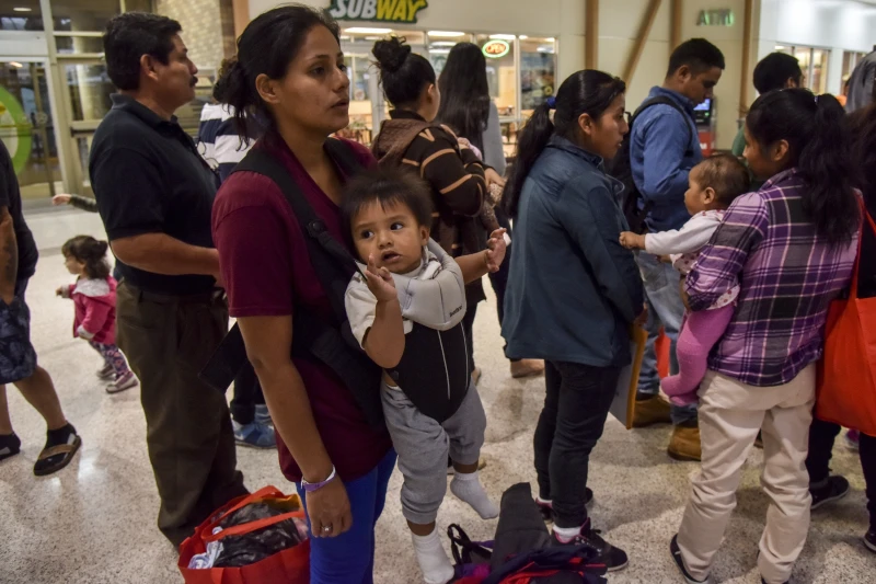 After receiving assistance from the Catholic Charities RGV Humanitarian Respite Center, migrant families from Mexico and Central America who have been granted asylum in the United States are processed for their transport to various destinations across the United States from the at the Central Station Bus Terminal on June 19, 2018, in McAllen, Texas. / Credit: Jahi Chikwendiu/The Washington Post via Getty Images