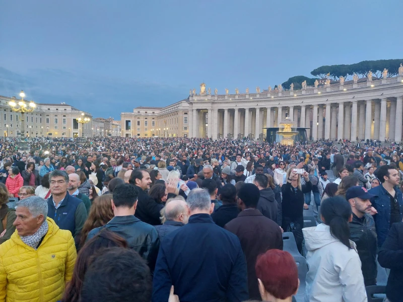 Thousands depart St. Peter’s Square after praying the Holy Rosary for Pope Francis, Monday, April 21, 2025 / Credit: Kristina Millare/CNA
