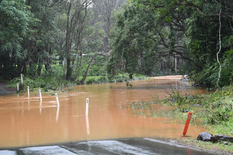 A flooded road is seen in the village of Tintenbar after heavy rain on April 5, 2024, in Ballina, Australia. / Credit: James D. Morgan/Getty Images