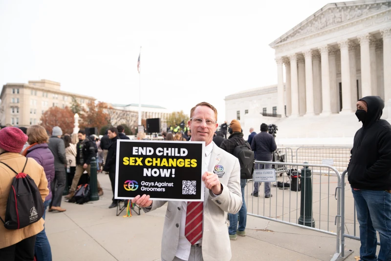 A demonstrator holds a sign opposing sex changes for minors at a rally on the steps of the United States Supreme Court on Dec. 4, 2024, as justices heard oral arguments in a challenge to a Tennessee law banning transgender surgeries for minors. / Credit: Migi Fabara/CNA