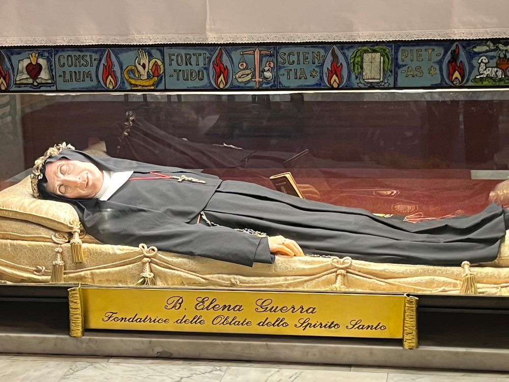 I had been to Lucca, Italy the previous week and brought back a first class relic of newly canonized St. Elena Guerra, thanks to the generosity of the congregation of sisters she founded: Oblates of the Holy Spirit. St. Elena is often referred to as the “Apostle of the Holy Spirit.” She fervently promoted devotion to the Holy Spirit and a renewal of the Church through a new Pentecost.