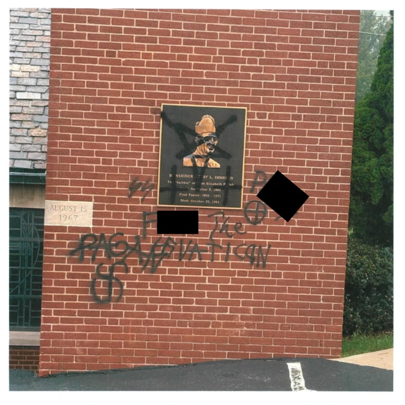 Eckman said in a July 19 statement that St. Elizabeth of Hungary Church in Pleasant Hills, Pennsylvania, had been desecrated with “anti-Catholic and anti-Semitic messages.”