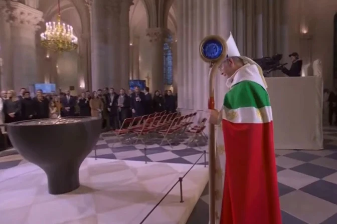 Archbishop Laurent Ulrich presides at the first Mass in the reopened Cathedral of Notre Dame on Dec. 8, 2024. / Credit: EWTN/Screenshot