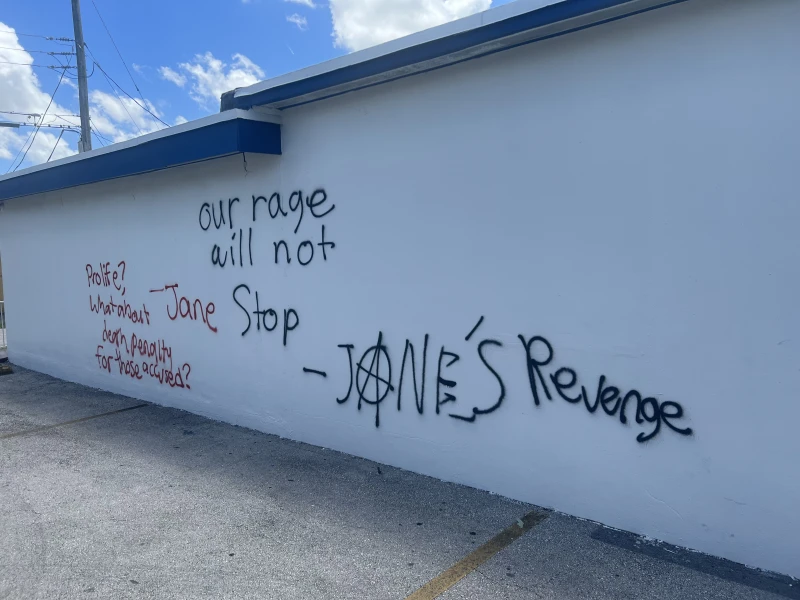 At one pregnancy center in Hialeah, Florida, Heartbeat of Miami, the vandalism resulted in thousands of dollars in damages. The Archdiocese of Miami’s Hollywood pregnancy center and the South Broward Pregnancy Help Center, located just north of Miami, were also targeted. At South Broward, the words “Jane’s revenge” and an anarchist symbol were also graffitied on the property.