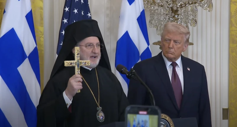 Archbishop Elpidophoros of the Greek Orthodox Archdiocese of America kicked off this year’s Greek Independence Day event at the White House on Monday by thanking President Donald Trump for protecting Christian communities in the Middle East.