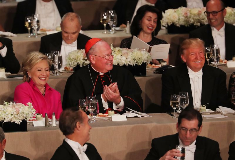 New York Cardinal Timothy Dolan, who as archbishop has served as host of the dinner for the past several years, sitting between the two candidates, responded to the decision by telling reporters that the archdiocese is “disappointed.”
