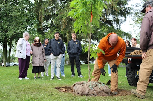 The National Catholic Center for Holocaust Education at Seton Hill University — founded by two Catholic sisters in 1987 — held a ceremony to plant the small tree at the beginning of May.