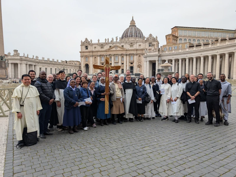 Jubilee of Hope pilgrims outside St. Peter’s Basilica, the final destination of their St. Philip Neri’s Seven Churches Pilgrimage, Monday, April 14, 2025. / Credit: Jacob Derry