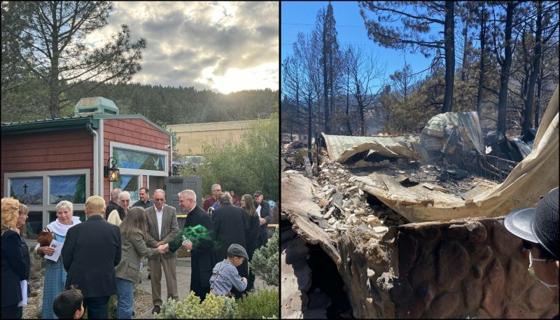 The Holy Spirit Catholic Mission in Washoe Valley, Nevada, before (left) and after a rampant wildfire destroyed the church on Saturday, Sept. 7, 2024. / Credit: Vincent Toomey