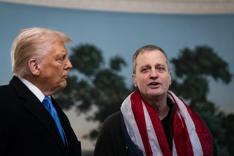 U.S. President Donald Trump welcomes Marc Fogel back to the United States after being released from Russian custody, at the White House on Feb. 11, 2025 in Washington, DC. / Credit: Photo by Al Drago/Getty Images