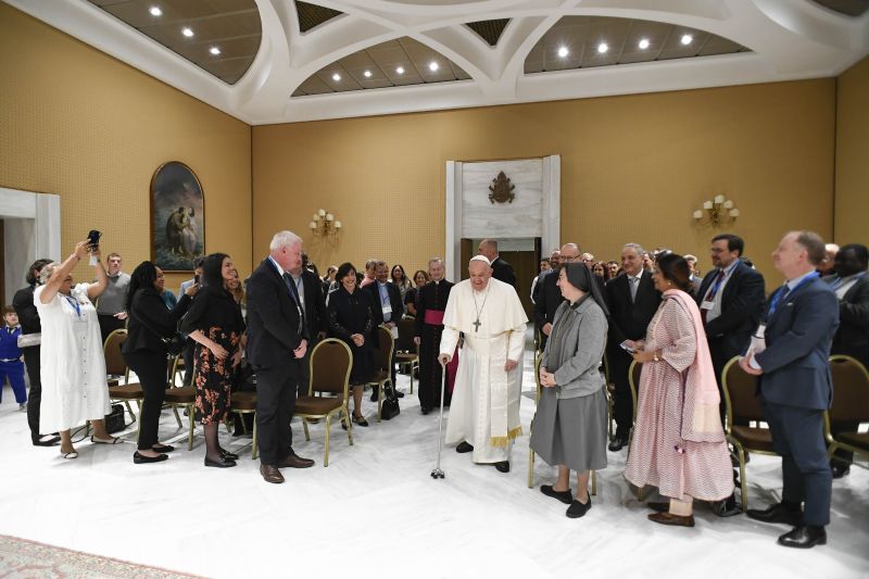 Pope Francis meets with participants of the “Care Is Work, Work Is Care” event sponsored by the Dicastery for Promoting Integral Human Development on May 8, 2024, at the Vatican. / Credit: Vatican Media