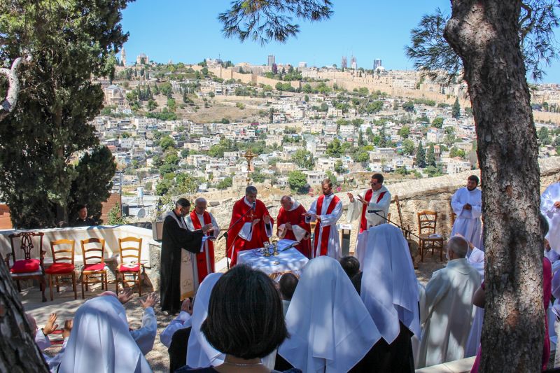Monsignor Éric de Moulins-Beaufort, president of the French Bishops Conference, presides over the Mass that took place on Sept. 14, 2024, at Maison Abraham (Abraham House) in Jerusalem during the celebrations for the 60th anniversary of its foundation as a pilgrim guest house run by Secours Catholique-Caritas France. / Credit: Latin Patriarchate of Jerusalem