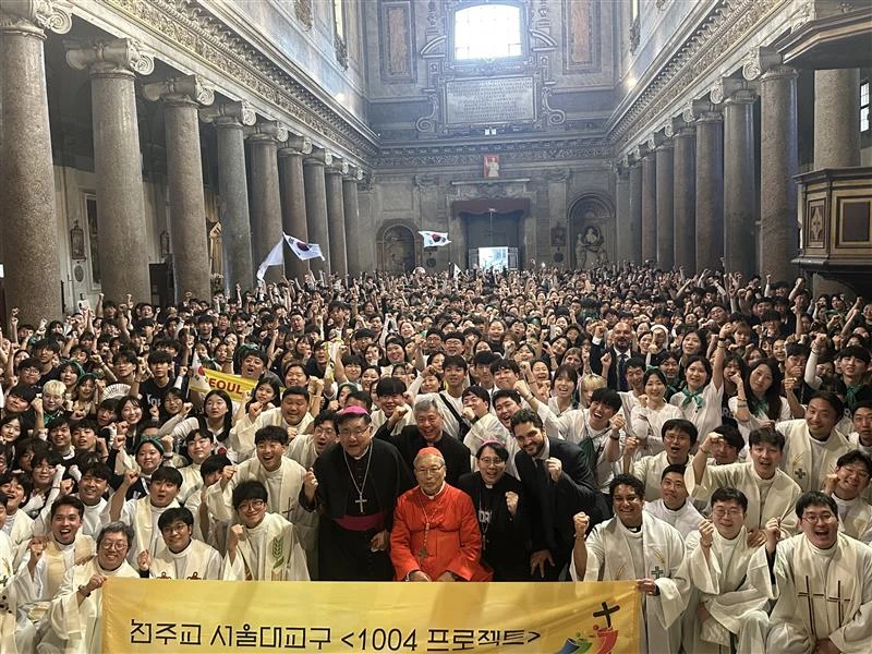 The young Korean pilgrims gathered for Mass during the jubilee at the Basilica of San Crisogono in Trastevere, a church with ties to Korea as the titular church of Cardinal Andrew Yeom Soo-jung of Seoul, who offered Mass for the pilgrims.