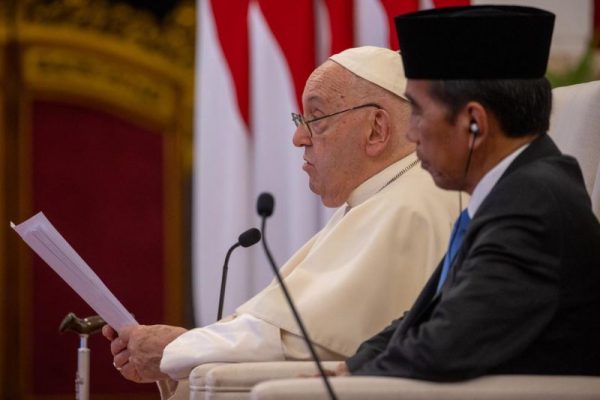 Pope Francis speaking next to Indonesian President Joko Widodo at the meeting with the authorities, civil society and the diplomatic corps in Jakarta on Sep 4, 2024. / Vatican Accredited Media Personnel (VAMP) Jakarta, Indonesia, Sep 4, 2024 / 02:00 am (CNA). On Pope Francis’ first full day of public appearances in Indonesia on Wednesday,…