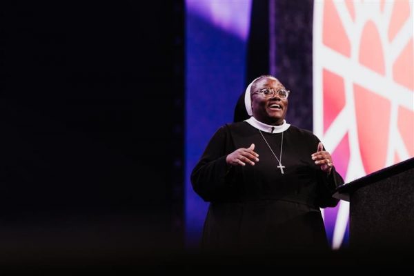 Sister Josephine Garrett gives a keynote talk at the 2024 National Eucharistic Congress in Indianapolis, which took place July 17–21, 2024. / Credit: Casey Johnson in partnership with the National Eucharistic Congress CNA Staff, Aug 3, 2024 / 07:00 am (CNA). At last month’s National Eucharistic Congress in Indianapolis, an estimated 6,000 participants attended Sister…