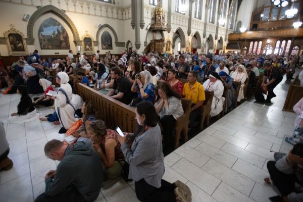 Throughout the week, the perpetual adoration chapel at the National Eucharistic Congress in Indianapolis has been full to overflowing. / Credit: Jeffrey Bruno Indianapolis, Ind., Jul 22, 2024 / 09:00 am (CNA). It was standing room only at St. John the Evangelist Catholic Church in downtown Indianapolis for much of the week as a steady…