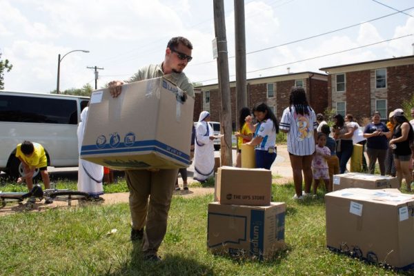Perpetual Pilgrim Patrick Fayad lifts a heavy “Box of Mercy” filled with donations for refugee families. / Credit: Jonah McKeown/CNA St. Louis, Mo., Jul 10, 2024 / 17:25 pm (CNA). As cars sped past a humble St. Louis apartment complex and children played nearby, a gaggle of mostly Latino residents gathered around a group of…