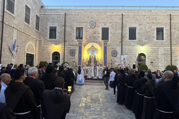 Pilgrims attend Mass ahead of a Marian procession on May 31, 2024, near the Church of the Holy Sepulcher in the Old City of Jerusalem to ask Our Lady of Palestine to intercede for peace in war-torn Gaza. / Credit: Rafi Ghattas Jerusalem, Jun 3, 2024 / 11:18 am (CNA). Near the Church of the…
