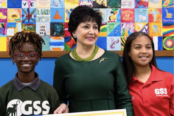New Orleans Saints and Pelicans owner Gayle Benson pictured with two students at Good Shepherd School in New Orleans, where she announced her decision to give a large donation to fund the opening of a second school in December 2023. / Courtesy: New Orleans Saints CNA Staff, Jan 7, 2024 / 06:00 am (CNA). New…