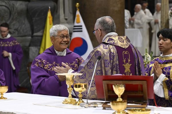 Cardinal Lazzaro You Heung-sik, prefect of Dicastery for the Clergy, and Vatican Secretary of State Cardinal Pietro Parolin celebrate Mass on Dec. 11, 2023, to mark the 60th anniversary of diplomatic relations between the Holy See and the Republic of Korea. / Credit: Vatican Media Rome Newsroom, Dec 12, 2023 / 13:23 pm (CNA). Pope…