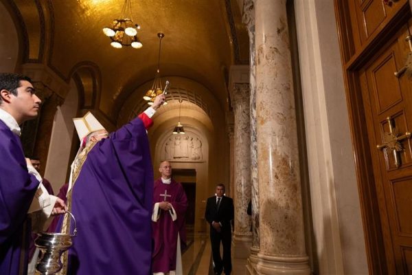 Archbishop Timothy Broglio blesses the doors to be used as a Holy Door for the 2025 Jubilee Year at the Basilica of the National Shrine of the Immaculate Conception in Washington, D.C., on Dec. 3, 2023. / Credit: The Basilica of the National Shrine of the Immaculate Conception Washington D.C., Dec 4, 2023 / 16:10…