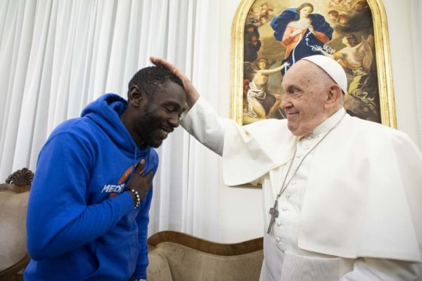 Pope Francis met with 30-year-old Mbengue Nyimbilo Crepin who shared his story during a meeting at the pope’s Vatican City residence Casa Santa Marta on Nov. 17. / Credit: Vatican Media Vatican City, Nov 18, 2023 / 12:15 pm (CNA). Pope Francis had an emotional meeting on Friday with an African migrant whose wife and…