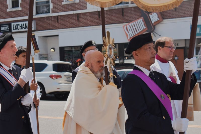 Holy Ghost participants awaited the approaching monstrance outside the Church, patiently awaiting Christ’s arrival.