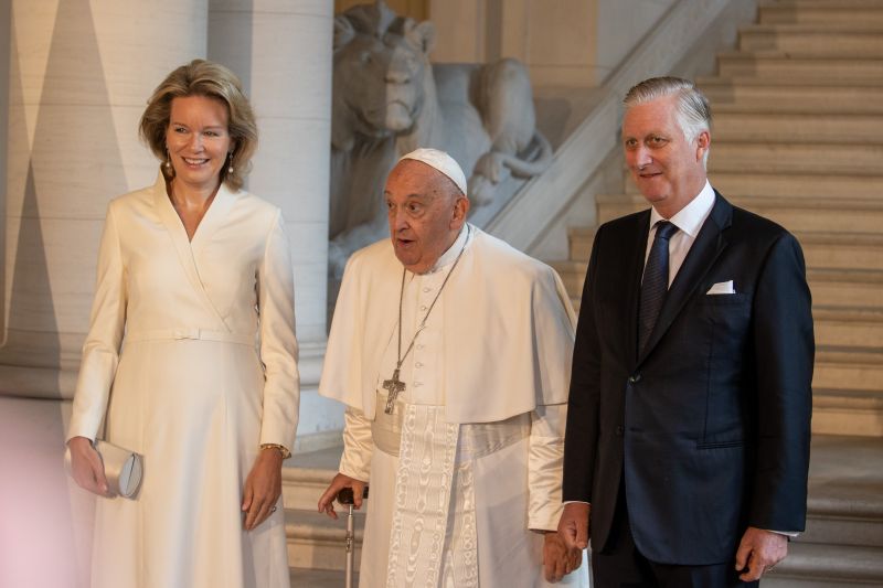 After the formal reception, the pope met privately with the King and Queen before moving to the castle’s Grand Gallery, where he addressed 300 dignitaries and political authorities, including Belgian Prime Minister Alexander De Croo.