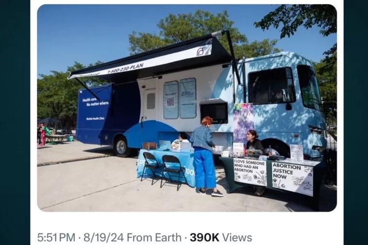 Planned Parenthood mobile van parked outside the Democratic National Convention offering free abortions and vasectomies. / Credit: Screenshot / X Account of NYPost last visited on August 22, 2024.