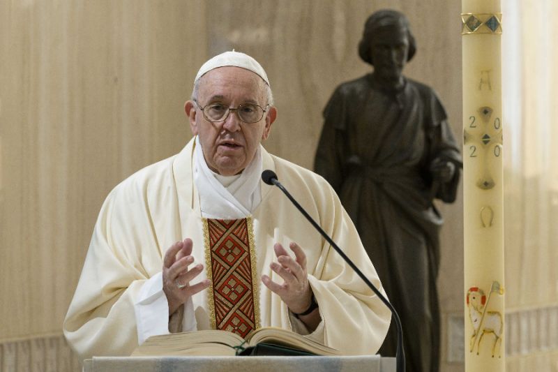 Pope Francis celebrates Mass in the chapel of the Casa Santa Marta on May 1, 2020, the feast of St. Joseph the Worker. / Credit: Vatican Media
