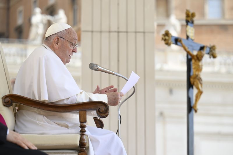 Pope Francis addresses the faithful gathered in St. Peter’s Square for his Wednesday general audience on May 15, 2024, at the Vatican. / Credit: Vatican Media