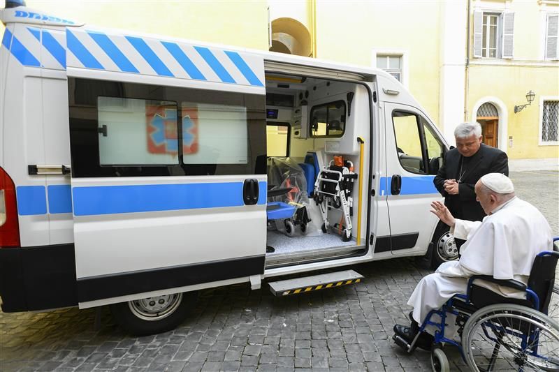 Pope Francis blesses the ambulance that he donated in June 2024 to to treat the wounded in Ukraine’s Ternopil region. / Credit: Dicastery for the Service of Charity
