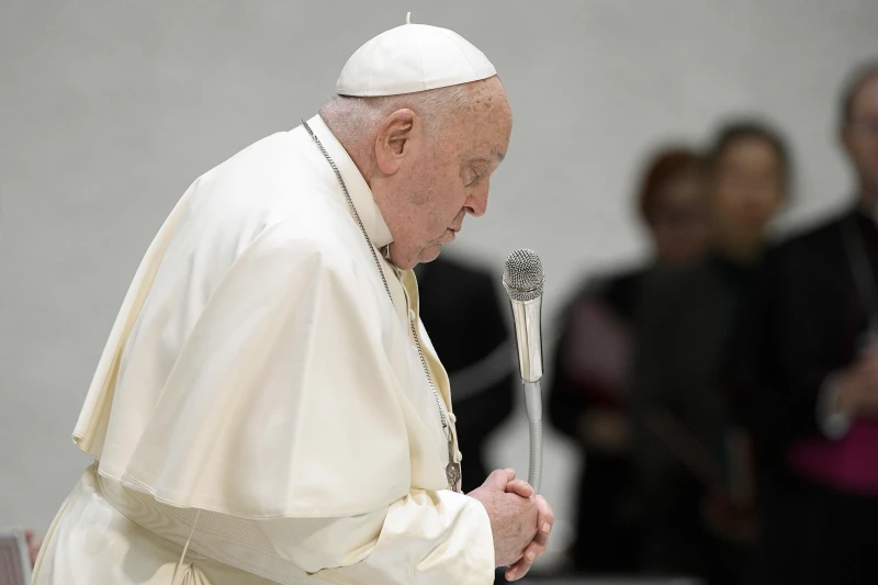 Pope Francis prays during his Wednesday general audience on Feb. 5, 2025, in the Paul VI Audience Hall at the Vatican. / Credit: Vatican Media